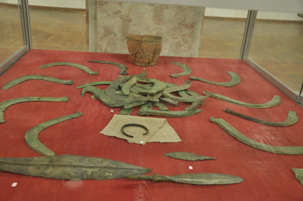 Cele mai semnificative piese etalate sunt: o săpăligă din corn, topoare și pumnale din bronz, tezaur de seceri din bronz descoperit lângă s. Dancu, tipare de piatră pentru turnarea armelor din bronz.