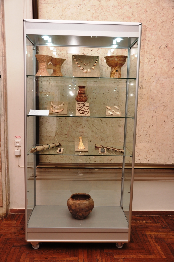 Cele peste 380 de piese – vase, unelte de muncă, arme, piese de vestimentație, obiecte de podoabă, confecționate din ceramică, os, piatră, silex, sticlă, scoică și bronz – reflectă activitățile tradiționale ale comunităților de păstori, creșterea vitelor și meșteșugul. Vasele de lut, care alcătuiesc majoritatea exponatelor prezentate, relevă principalele schimbări care au survenit în rezultatul interferenței dintre triburile timpurii de păstori și comunitățile sedentare autohtone de agricultori.